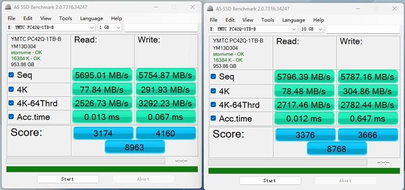 intel平台下,pc42q 1tb ssd的跑分来到了6316,想比amd平台有70%的提升。