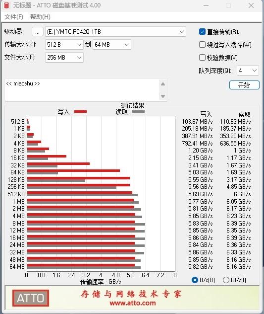32k的时候,写入达到了2.78gb/s,读取速度为1.67gb/s。从512kb开始,写入速度稳定在6.02gb/s左右,读取速度则能达到6.1gb/s以上。