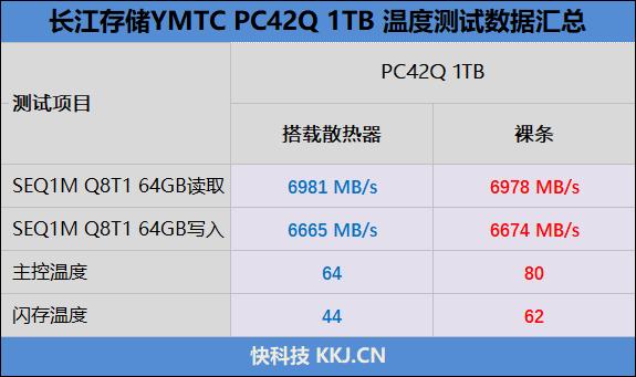 pc 42q的温度依然控制得非常出色,而且即便是没有安装散热片的时候,读写性能都是满血的,不会出现降速的情况。