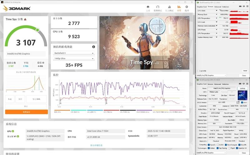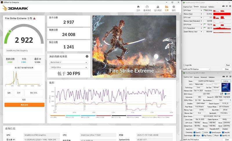酷睿ultra 7 155h单线程成绩为1752pts,多线程成绩11382pts。