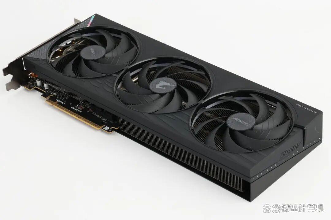 在外观整体方面,技嘉aorus geforce rtx 5060 elite 8g精准贯彻了aorus系列一脉相承的硬派科幻风格,每一处细节都彰显着兼具力量感与科技感的设计美学。其正面创新性地运用大面积非对称纹路进行装饰,线条错落有致且富有张力,左侧则巧妙搭配反光镜面材质,两种截然不同的设计语言形成鲜明而和谐的碰撞效果,既打破了传统显卡外观的单调感,又赋予产品丰富立体的视觉层次,让人过目难忘。此外,该产品外壳通体采用沉稳的纯黑配色,辅以细腻的表面处理工艺,整体散发着冷峻专业的气质,完美契合电竞玩家对桌面装备“酷炫且不失格调”的审美诉求,使其在桌面陈列中自然而然成为吸睛的视觉焦点。