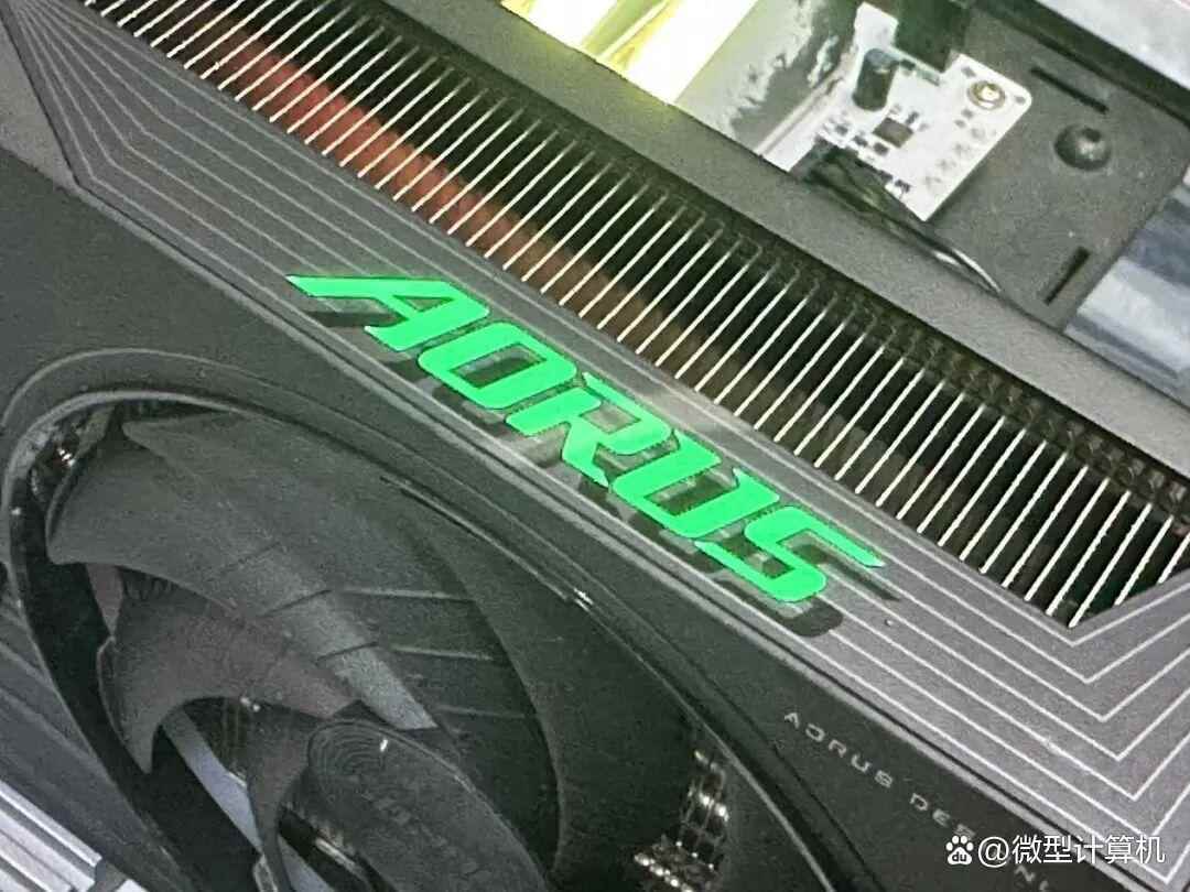 ▲aorus geforce rtx 5060 elite 8g的顶部右上角设计了aorus幻彩背光logo,可以与前脸处交相辉映。
