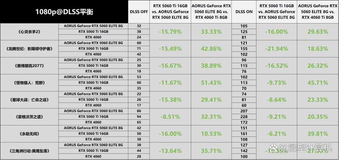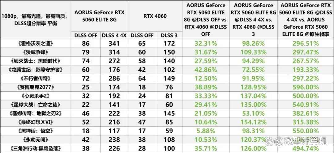 通过与前代产品rtx 4060的直接性能对决,dlss 4技术的优势展现得淋漓尽致。在关闭dlss功能的纯硬件性能比拼中,技嘉aorus geforce rtx 5060 elite 8g已能实现约30%的帧率领先,这一数据直观印证了其在核心硬件规格上的先天优势。而当dlss 4被激活后,性能差距进一步呈现质的飞跃——相较于仅支持dlss 3的rtx 4060,该显卡在测试覆盖的多数游戏中,帧率提升幅度竟突破110%,部分高负载场景的优势更是令人瞩目,充分彰显了新一代ai渲染技术的革命性突破。