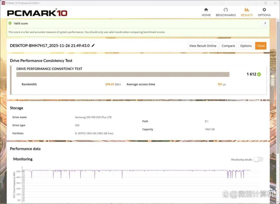 ▲三星990 evo plus 2tb的pcmark 10磁盘性能一致性测试成绩
