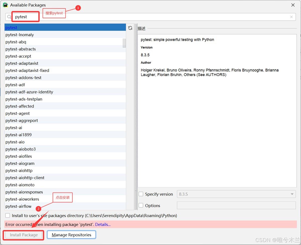 然后再次尝试安装 pytest。