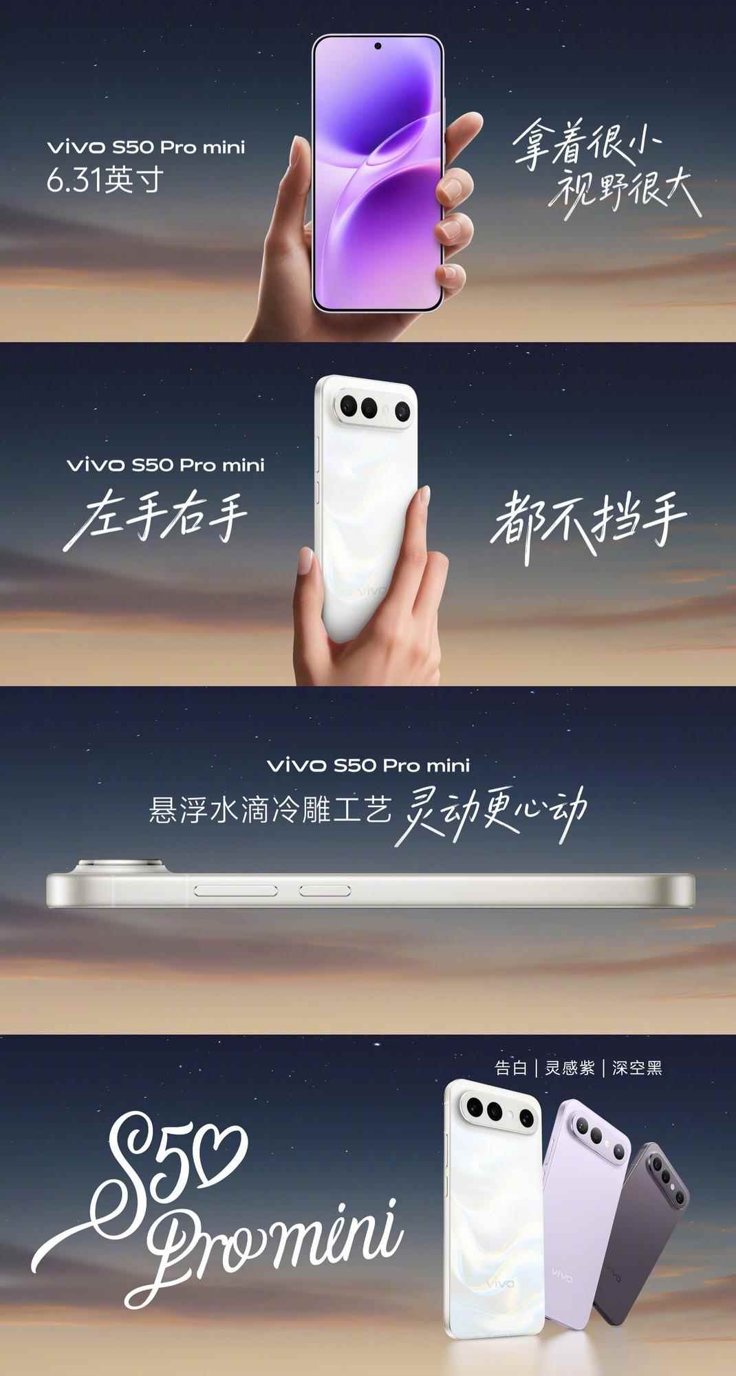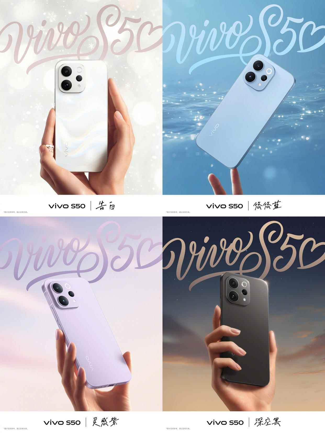 vivo s50系列带来「告白」「灵感紫」「悠悠蓝」「深空黑」四款情绪化配色,每一色都承载独特精神内核: