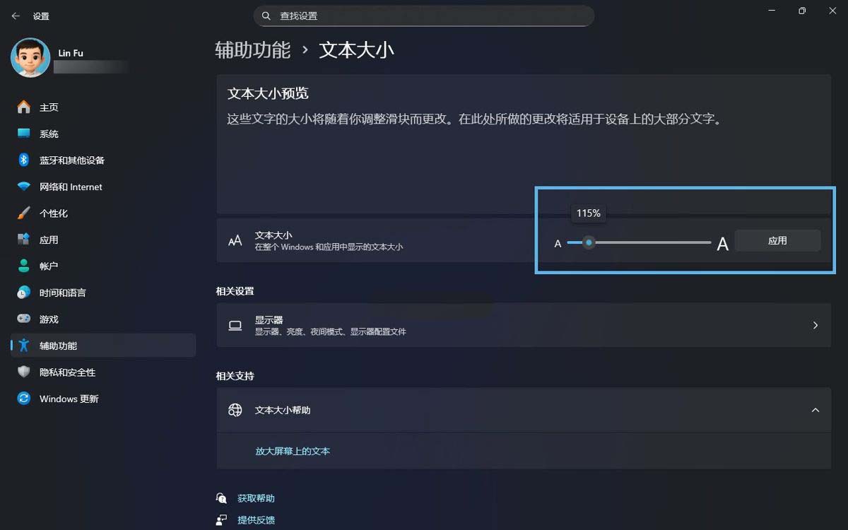 调整 windows 11 文本大小