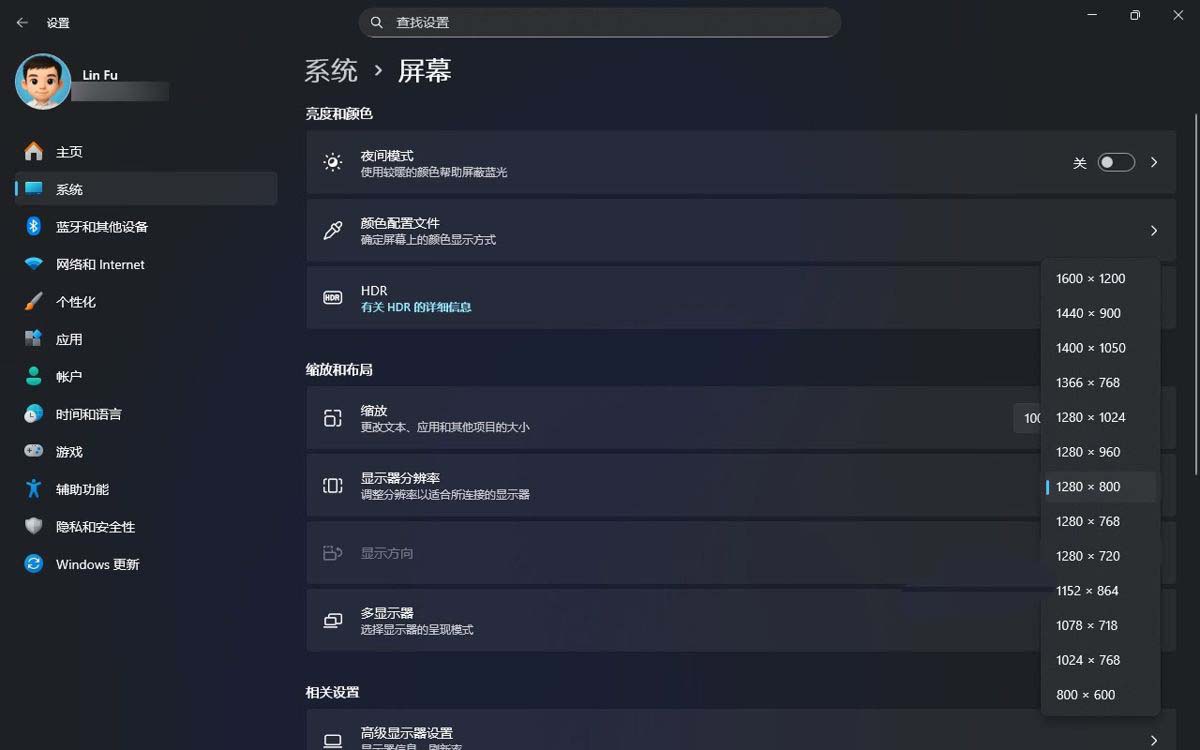 切换 windows 11 显示器分辨率
