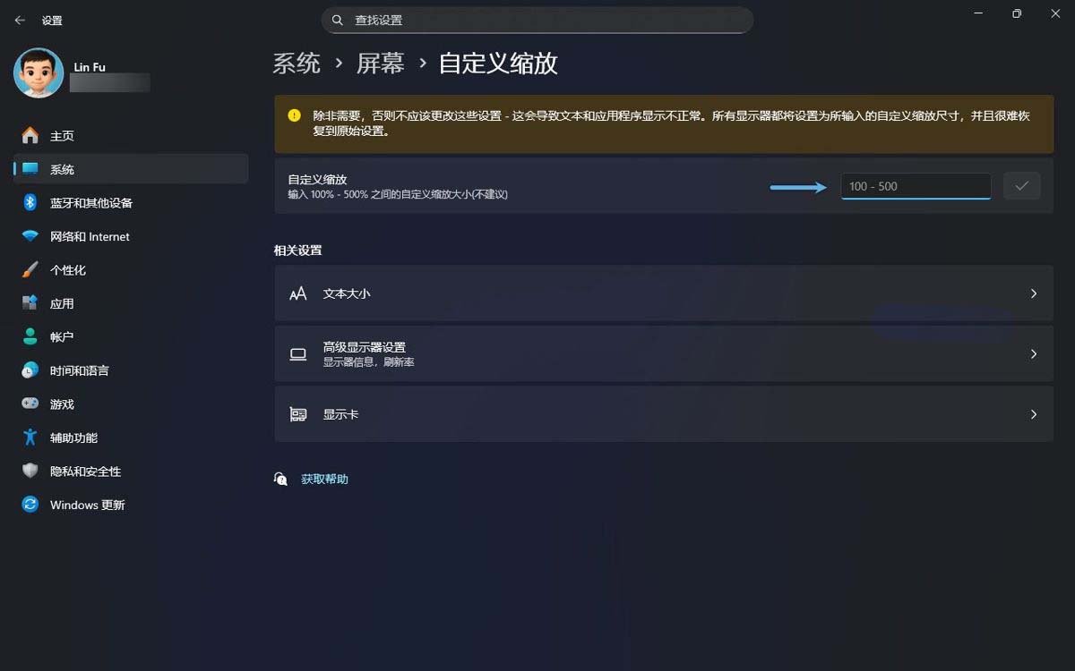 自定义 windows 11 缩放比例