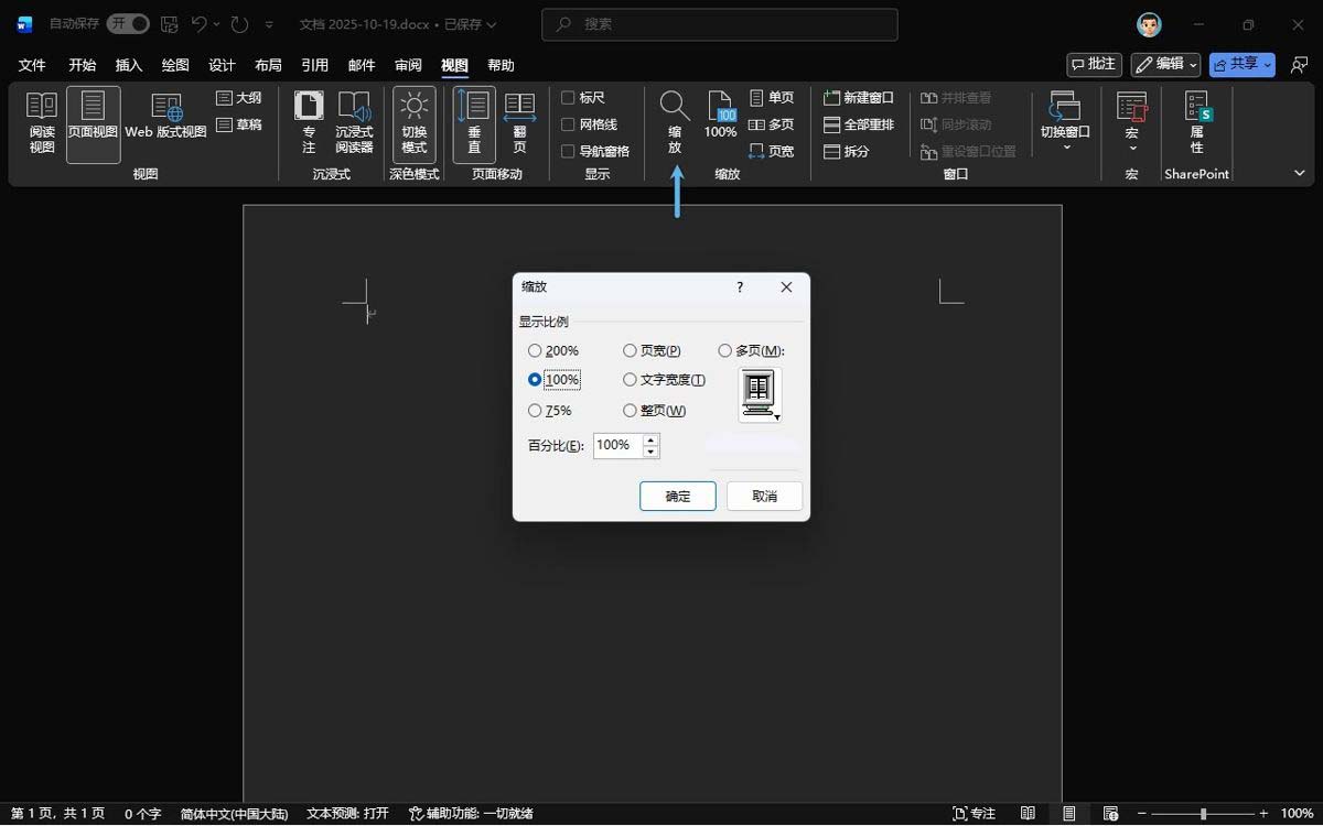 设置 word 显示比例