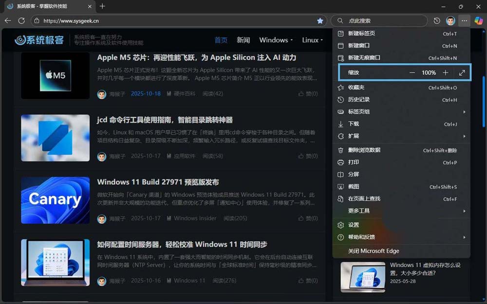 设置 microsoft edge 缩放百分比