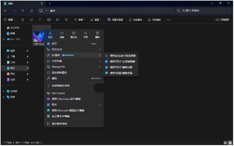 根据你选择的文件类型和不同动作,系统会自动打开 microsoft edge、「照片」或「画图」应用,帮你无缝衔接后续的 ai 处理。简单来说,这个「ai 操作」菜单就是一个智能快捷方式,会根据你所选的文件类型,自动调用不同应用中的 ai 功能。