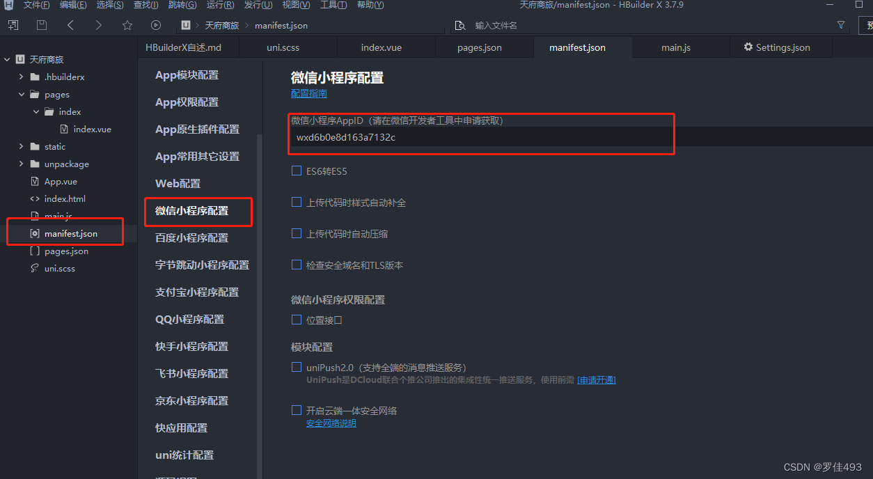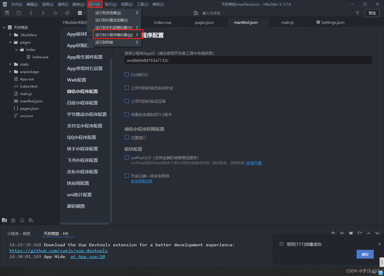 在微信小程序上运行要先配置小程序AppID