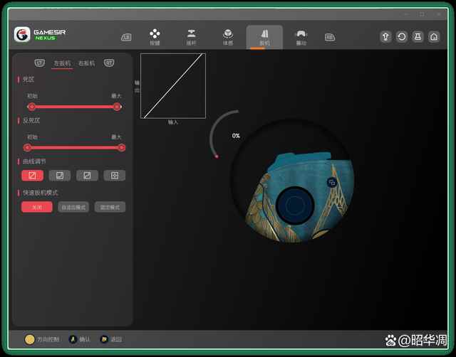 ▼而且它还支持通过软件调节零死区,这可是普通 xbox 手柄都没有的功能。小鸡还专门给它配置了独立 adc 芯片和专属算法,官方给出的数据是有线/无线双 1000hz 回报率,参数相当漂亮。我自己在实际测试中也确实跑到了这个水平,这种高回报带来的跟手感,在需要极限反应的动作游戏时,真的非常加分。