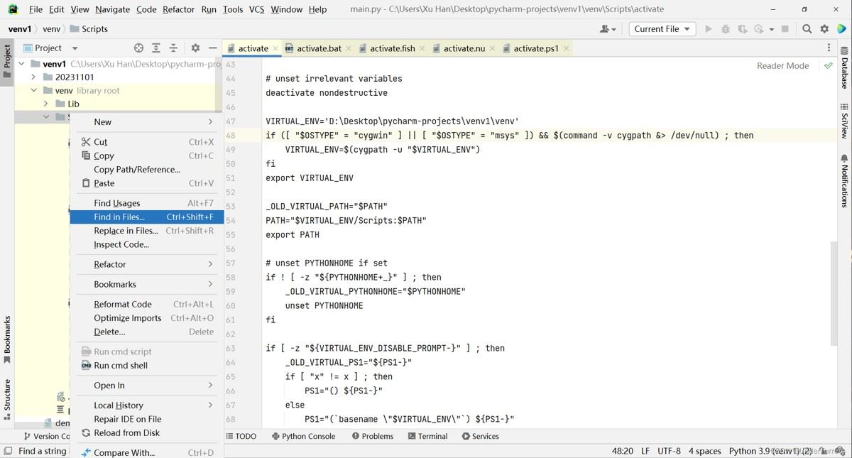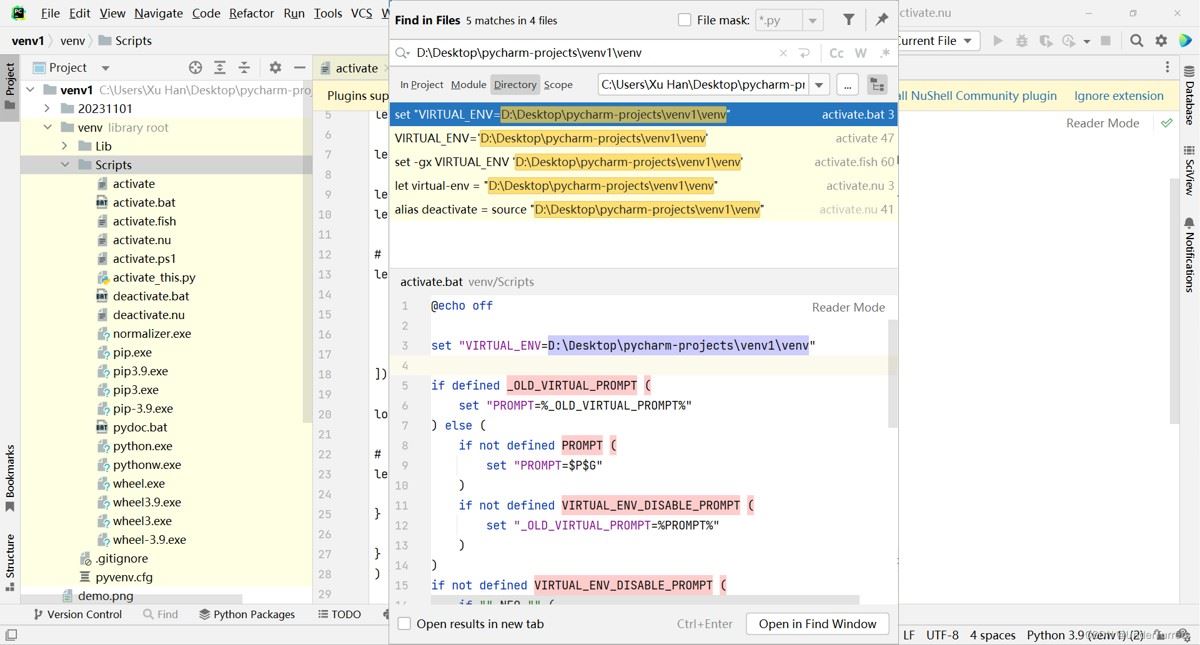 venv\scripts这个文件夹,查找替换成现在的路径即可,如下: