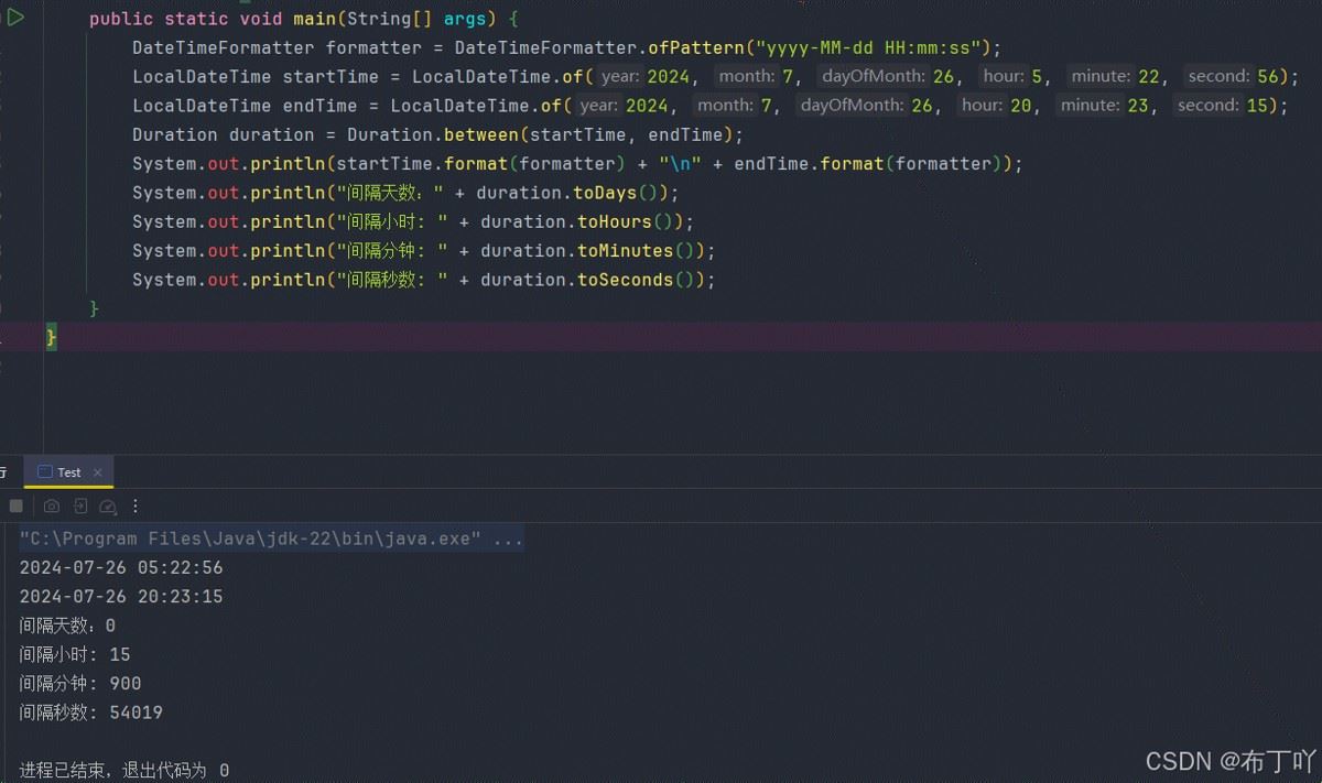 要计算两个localtime对象之间的间隔,也可以使用java.time.duration类。