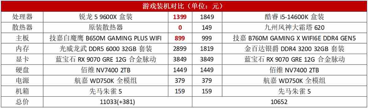对于主流玩家来讲,游戏装机一般都会选择千元级的处理器,在很长时间内锐龙5 9600x都是同级别性价比最为突出的一款。而在近期内存价格成为影响用户硬件选择的重要因素,酷睿i5-14600kf凭借对ddr4内存的支持,似乎成为经济性更好的选择。其实选锐龙5 9600x装机成本只贵300多元,游戏性能领先15%,性价比依然领先。