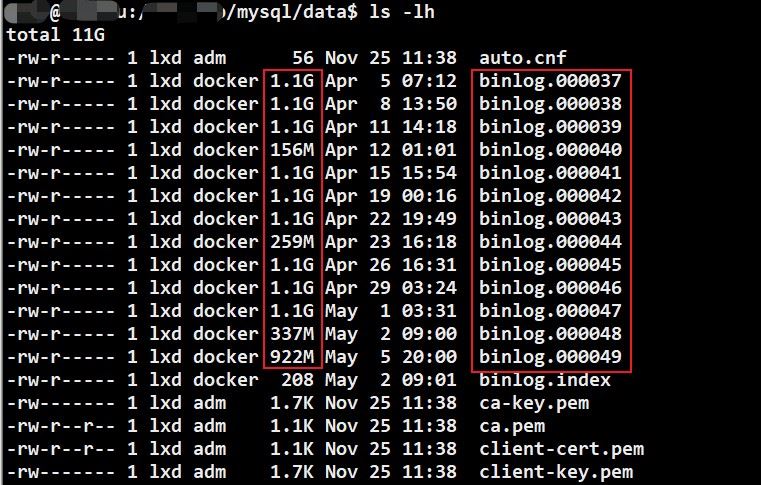 默认情况下,mysql会生成很多个binlog,占用很大的空间。