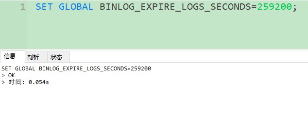 set global binlog_expire_logs_seconds=259200;