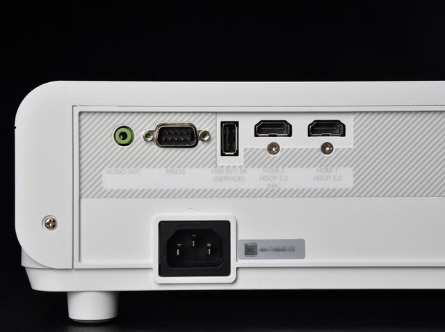 机身顶部设计简洁明了,仅有电源键和几个核心功能按键,即使不用遥控器也能快速操作。背面接口区布局合理,配备了2个hdmi2.0接口(支持hdcp2.2、hdmi2兼容hdmiarc)、1个3.5mm音频输出、1个rs232控制接口以及1个usba接口(兼具供电和服务功能),丰富的接口足以满足家庭影音设备的连接需求,尤其是hdmiarc功能,只需一根hdmi线就能实现音画同步传输,省去了额外连接音频线的麻烦。