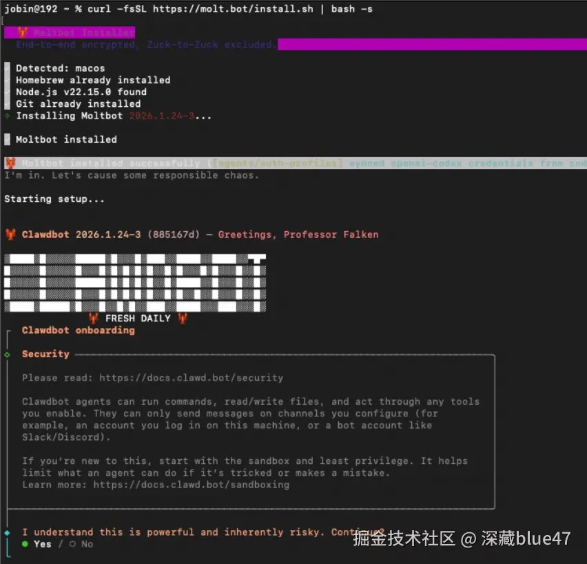 提示:如果 npm 安装后找不到 moltbot 指令,请尝试使用 clawdbot 指令。