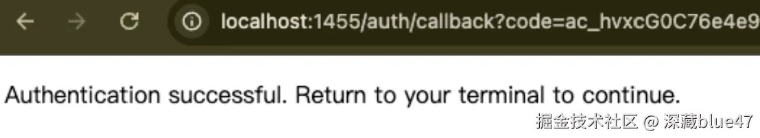 ps: 如果终端没有自动抓取到 token,请手动复制浏览器地址栏中 localhost 开头的完整回调地址,粘贴到终端即可。