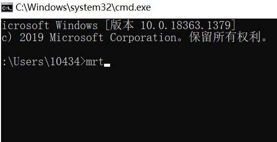 2、命令提示符窗口,输入并按回车,执行 mrt 命令;