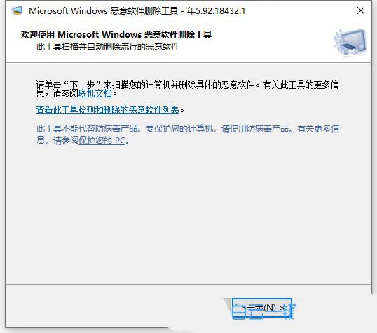 3、microsoft windows 恶意软件删除工具,点击下一步;