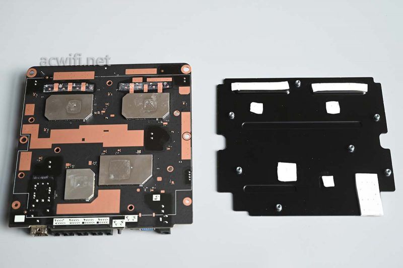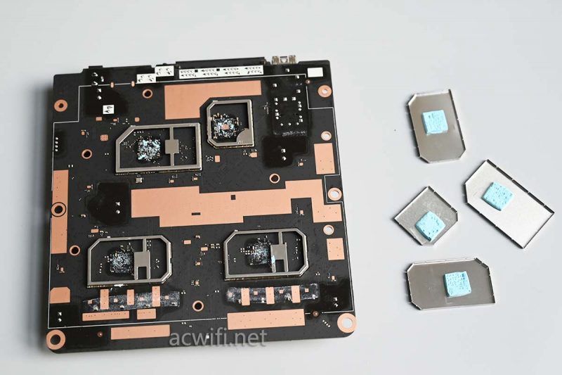 均热铝板也有几片导热硅脂垫片,比如2.4g和5g的fem芯片底部位置也有放置。