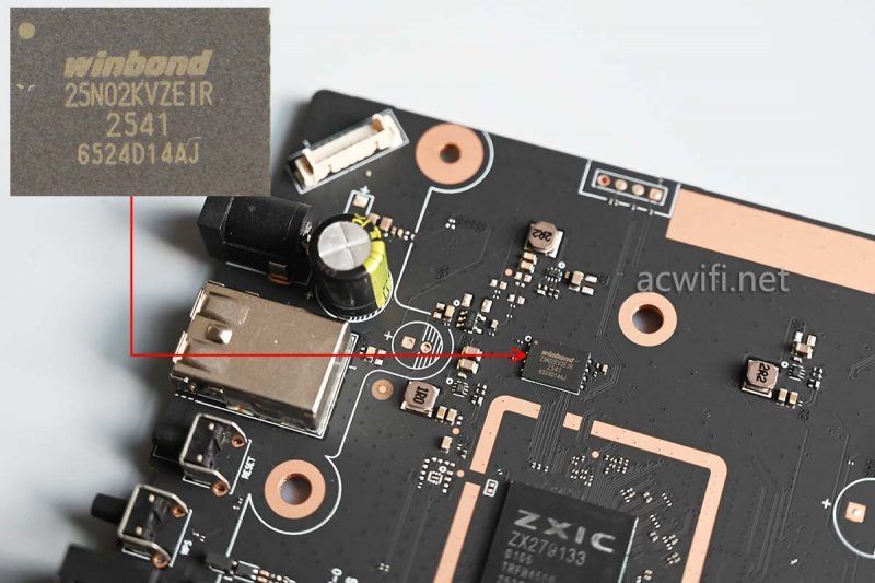 闪存芯片型号为w25n02kvzeir,容量256mb。