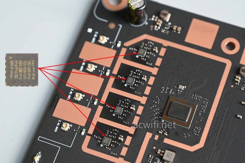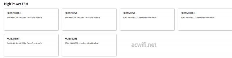 2.4g有外置四颗fem芯片,型号是康希通信的kct8280he,还接有滤波器。