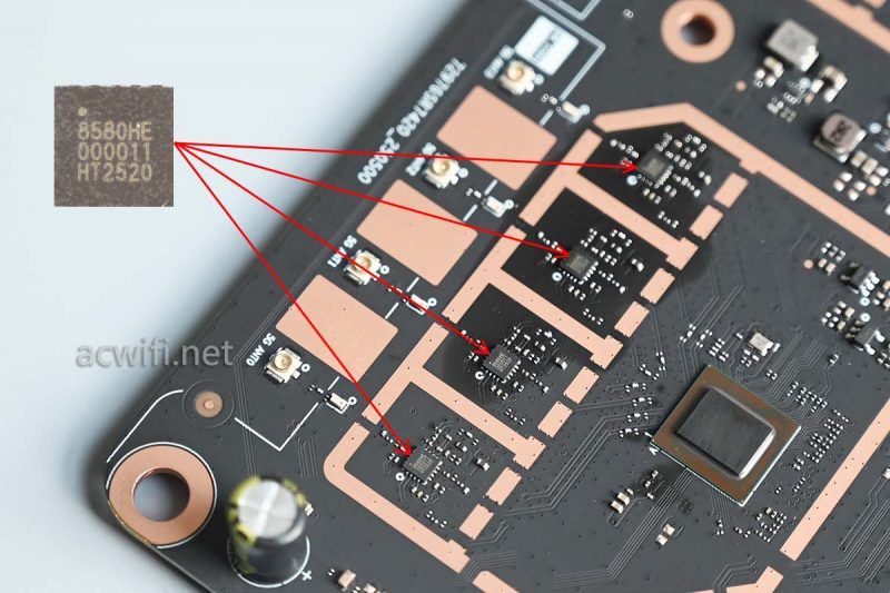5g 也有四颗独立的fem芯片,型号是kct8580he,也有滤波器。