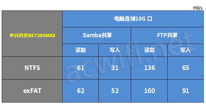 中兴问天be7200max的usb3.0支持samba共享和fat共享。
