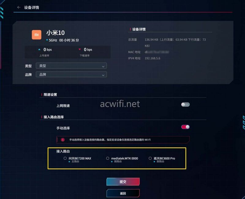 也可以对终端设备进行“接入路由”的绑定,绑定最近的那台路由,对于固定位置的智能家居设备来说,这个功能比较实用。