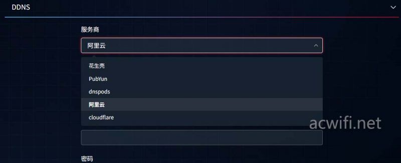 ddns(动态域名)服务里面包含:花生壳、pubyun、dnspods、阿里云、cloudflare。