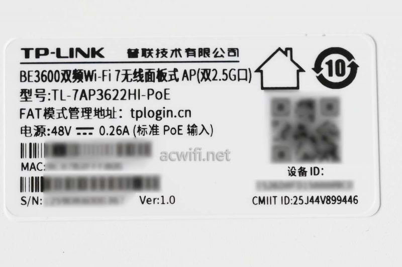 产品铭牌信息:型号tl-7ap3622hi-poe