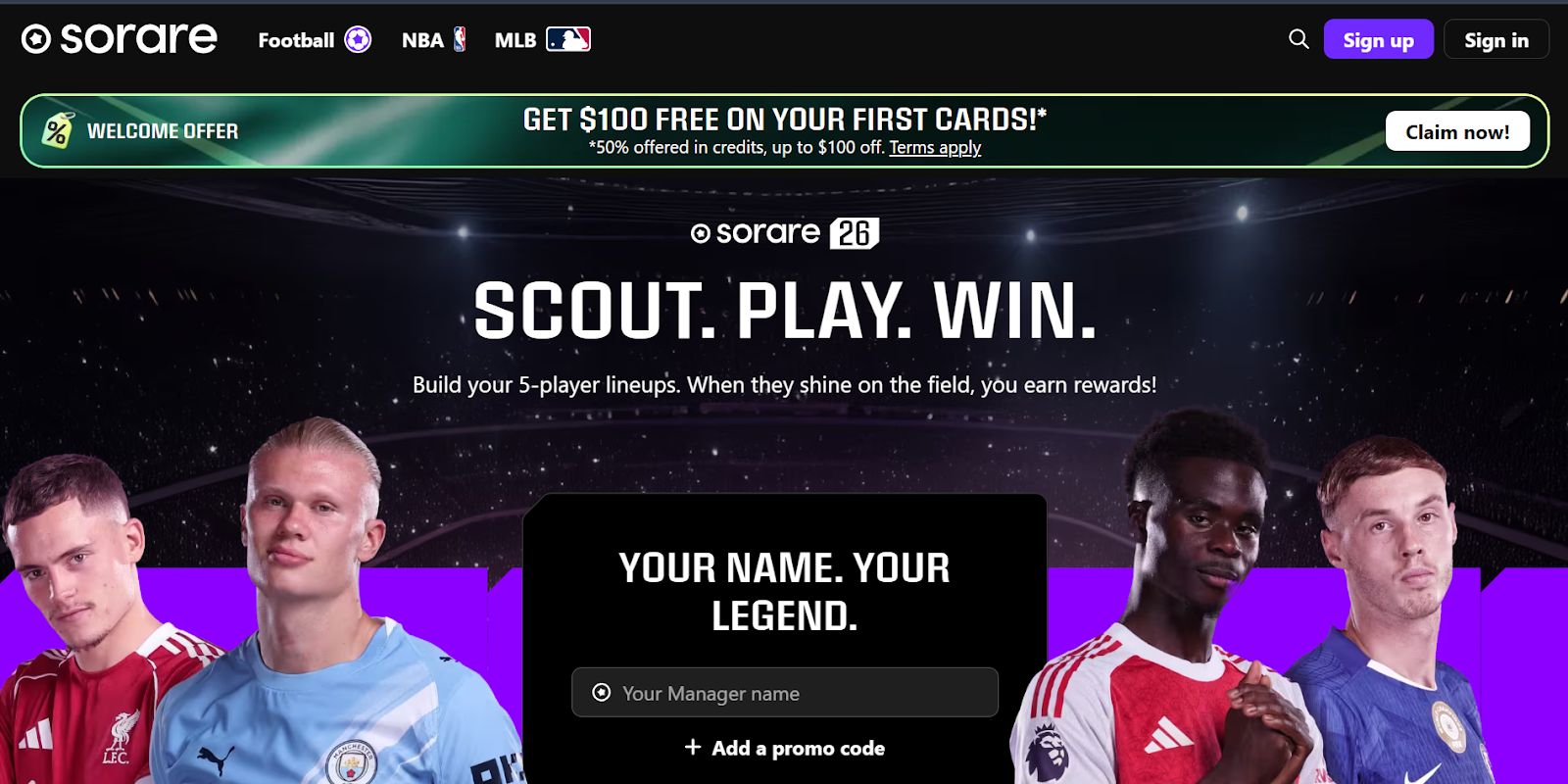 sorare是一款以现实世界中的足球、棒球和篮球为主题的体育类 nft 游戏。玩家无需操控虚拟世界中的角色,而是收集与真实运动员及其实际表现挂钩的数字球员卡。每张卡都是一张 nft,稀有度各不相同,这决定了卡牌的竞技性和价值。