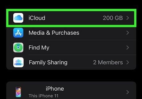 3. 点击icloud。它在设置的第二组中。这将打开一个包含各种icloud选项的页面,并提示您登录(如果尚未登录)。