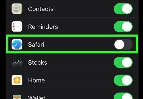 4. 关闭你想要删除的应用程序。如果你有多个想要删除的应用程序,点击它的滑块将其切换到关闭(灰色)位置。这将阻止应用程序数据同步到你的icloud。