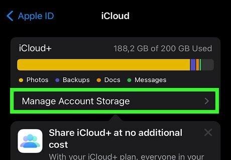 5. 点击管理账户存储。它在icloud页面的顶部。这将带您到使用icloud存储空间的数据的应用程序列表。