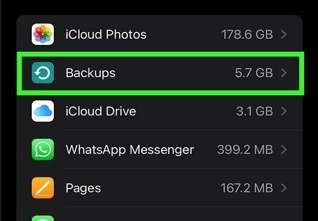 10. 点击icloud备份。您可以在底部找到它,位于**设备备份**标题下方。这将显示与您的帐户关联的所有icloud备份列表。