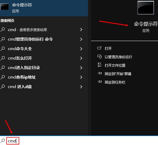 步骤2:输入“cmd”搜索命令提示符。