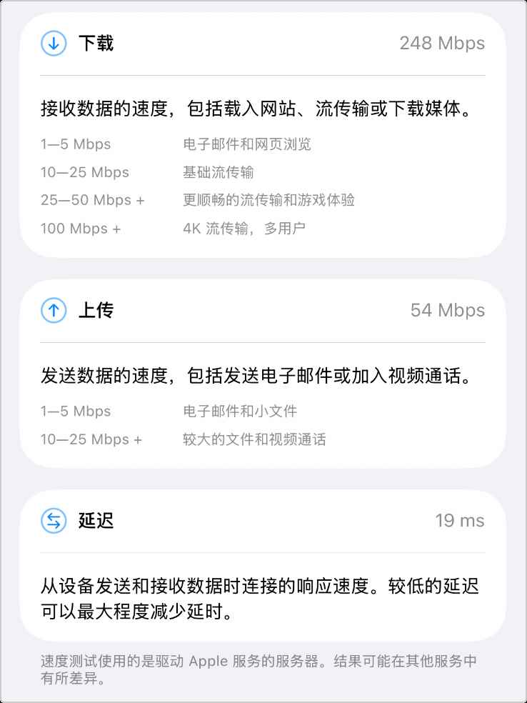 按照苹果的说明,我所在地区的中国移动 5g 速度属于比较顶级的网络状况