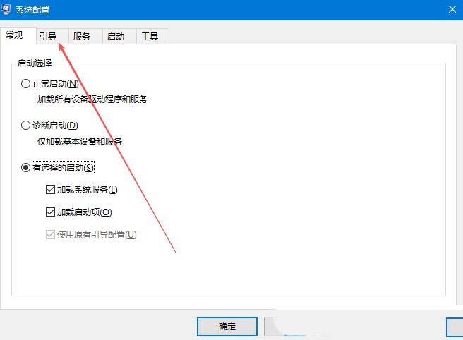 2、接着,在打开的窗口中,切换到“引导”选项栏。然后,勾选下方的“无gui引导”选项,再点击确定。