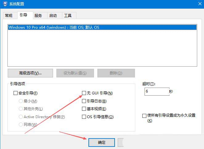 3、然后,勾选下方的“无gui引导”选项,再点击确定。