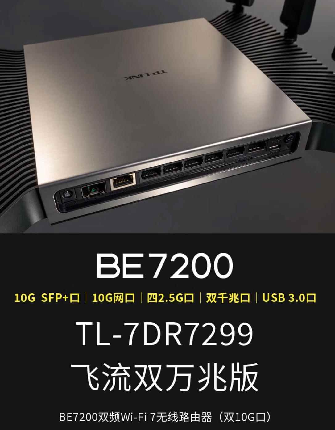普联 tp-link be7200 飞流双万兆版路由器现已开售,新品采用万兆网口、sfp+ 口设计,支持双频 8 流 wi-fi 7,首发售价 999 元。