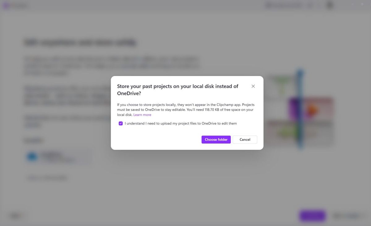 虽然他仍可选择将项目保存到本地硬盘,但问题在于未来任何时候想要重新编辑这些视频,都必须先将它们上传到 onedrive。更荒谬的是,微软声称用户的媒体文件(照片和视频)可以保留在本地设备上,除非用户主动选择备份到 onedrive,但项目文件本身却必须存储在云端,理由是为了方便用户在不同电脑访问。