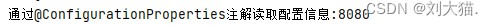 注意点1:@configurationproperties注解用于指定前缀,下方的属性名称必须和要获取的配置信息名称一致,比如必须叫port,否则获取值为null