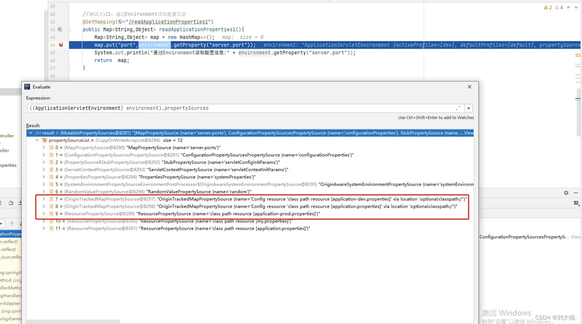 案例说明:application.properties配置文件设置内置spring.profiles.active=dev,用于关联application-dev.properties配置文件,正常代码运行会把application.properties和application-dev.properties配置文件都加载到内存中,但是现在我想创建一个config或者bean,通过@propertysource注解去注入并打印application-prod.properties中的这个内容:logging.level.root = warn,正确打印logging.level.root的结果应该是warn,因为它是最后加载的,但实际打印结果logging.level.root的值是info,