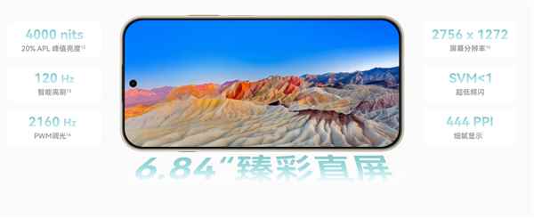 采用6.84英寸1.5k oled护眼直屏,支持120hz高刷新率、10.7亿色与p3广色域,分辨率2756×1272,像素密度444 ppi。